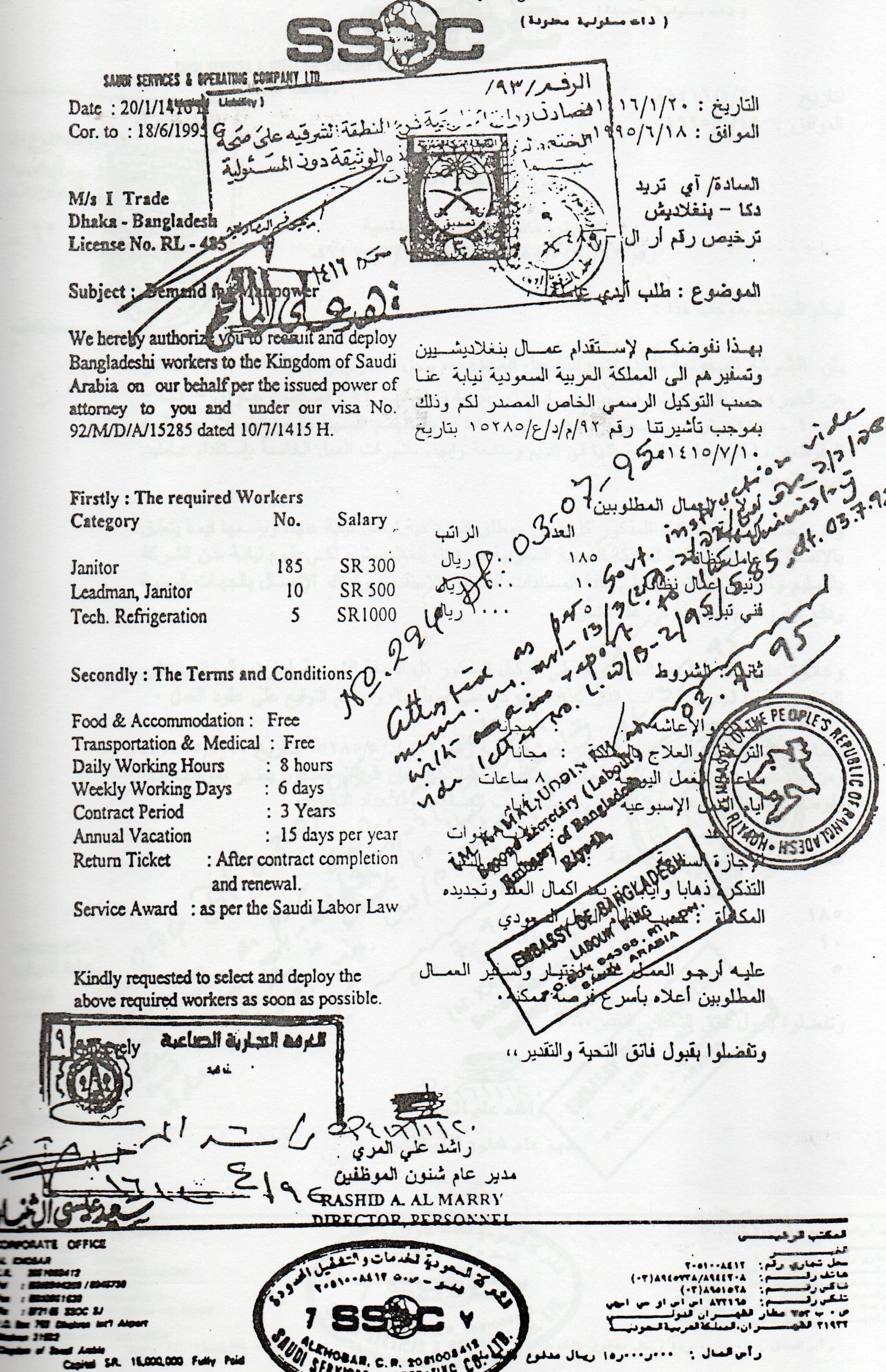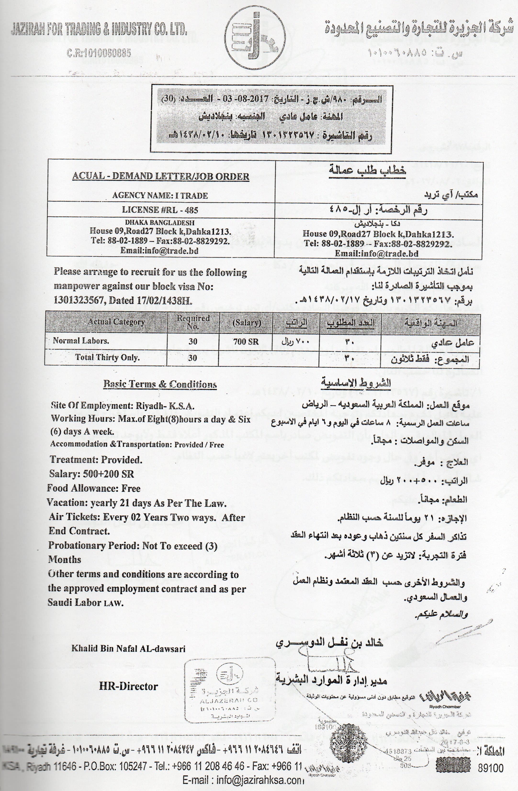 ( License. #1623 - GBB ), as one of the best of Bangladesh, having association with the leading international recruitment agencies.We place ourselves as the single expert,and provide you with a team, to complete workforce for Constructions,Operation and Maintenance,Healthcare, Automobile Services,Various Industries, AdministrativeServices and other Activities. We can provide you workers fromBangladesh for a competitive salary and complete mobilization plan enabling you to bid or execute your project more cost efficiently. We are in a position to provide services for all saudi arabian Recruitment through our Riyadh based Associate Office at Riyadh. We have a very cordial relationship with our concerned Government officials and with the Royal Saudi Embassy. We pledge our best services at all times.